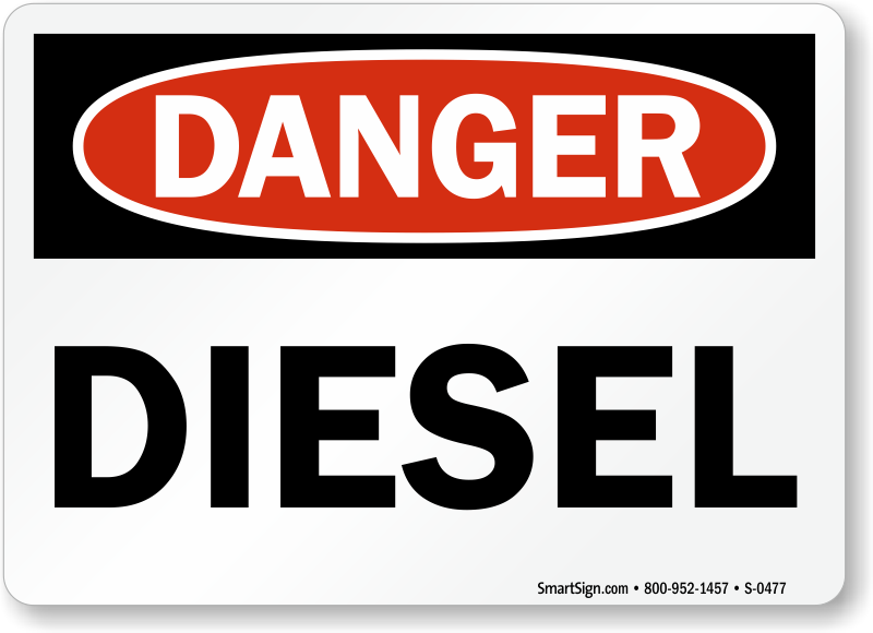 Diesel fuel is highly flammable. Alert everyone to potential dangers with this candid Danger sign.