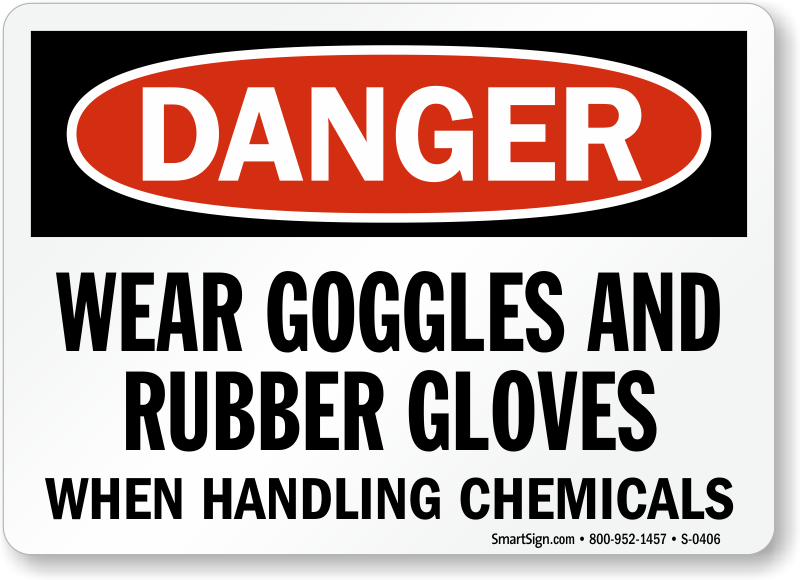Use a "wear goggles and rubber gloves when handling chemicals" sign. Reinforce the value of avoiding accidents.