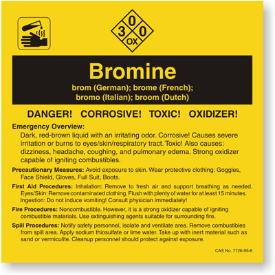 A Bromine chemical label will help prevent an avoidable and unnecessary accident. Nothing works better to increase safety than a Bromine label.