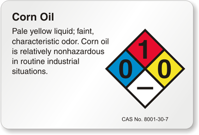 Emphasize on safety and adhere to hazardous substance regulations with Corn Oil label.