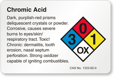 Display all the details along with side-effects of Chromic Acid through this effective NFPA label. Safeguard your employees and follow regulations.