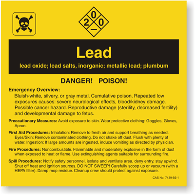 A Lead chemical label will help prevent an avoidable and unnecessary accident. Nothing works better to increase safety than a Lead label.