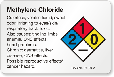 Make important safety details your first priority. Mark Methylene Chloride with bright NFPA compliant labels that alert & inform workers of possible hazards.