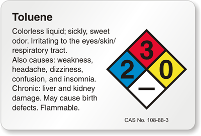 Your first priority at work is safety! Mark hazardous Toluene chemical with our informative labels.