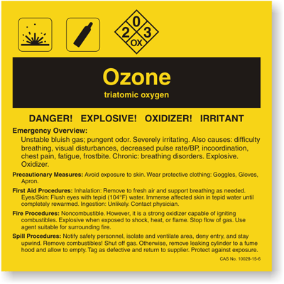 A Ozone chemical label will help prevent an avoidable and unnecessary accident. Nothing works better to increase safety than a Ozone label.