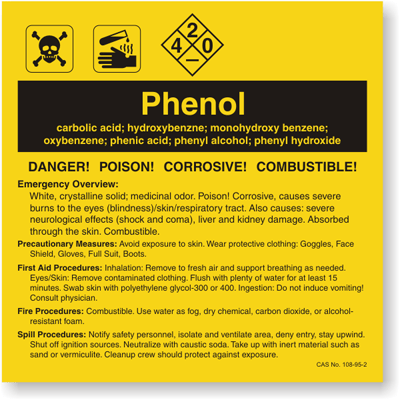A Phenol chemical label will help prevent an avoidable and unnecessary accident. Nothing works better to increase safety than a Phenol label.