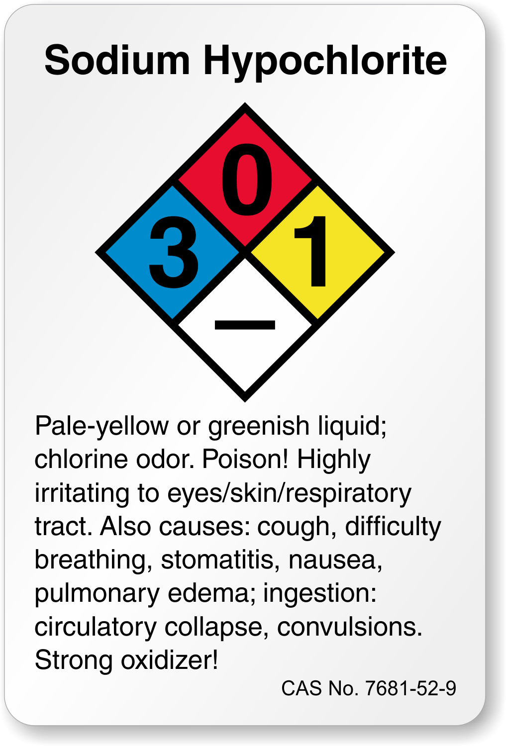 Sodium Hypochlorite Labels