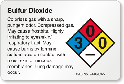 Display all the details along with side-effects of Sulfur Dioxide through this effective NFPA label. Safeguard your employees and follow regulations.