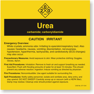 A Urea chemical label will help prevent an avoidable and unnecessary accident. Nothing works better to increase safety than a Urea label.