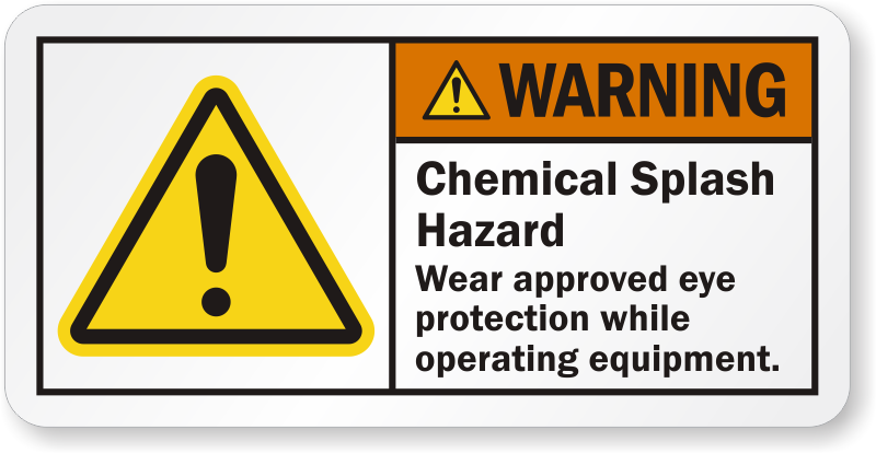 With this ANSI sign, carry out your responsibility as a facility owner to see that workers wear eye protection/safety glasses while operating equipments posing chemical splash hazard.