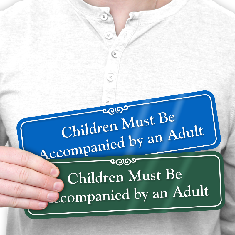 Who says pool safety signs have to be boring? Pick this designer Children Must Be Accompanied By An Adult sign that adds charm to your décor, and effectively displays your safety message. Choose from a range of elegant color options.