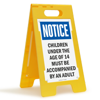 This double-sided 'Notice - Children Under The Age Of 14 Must Be Accompanied By An Adult' Standing Floor Sign is hard-to-miss!