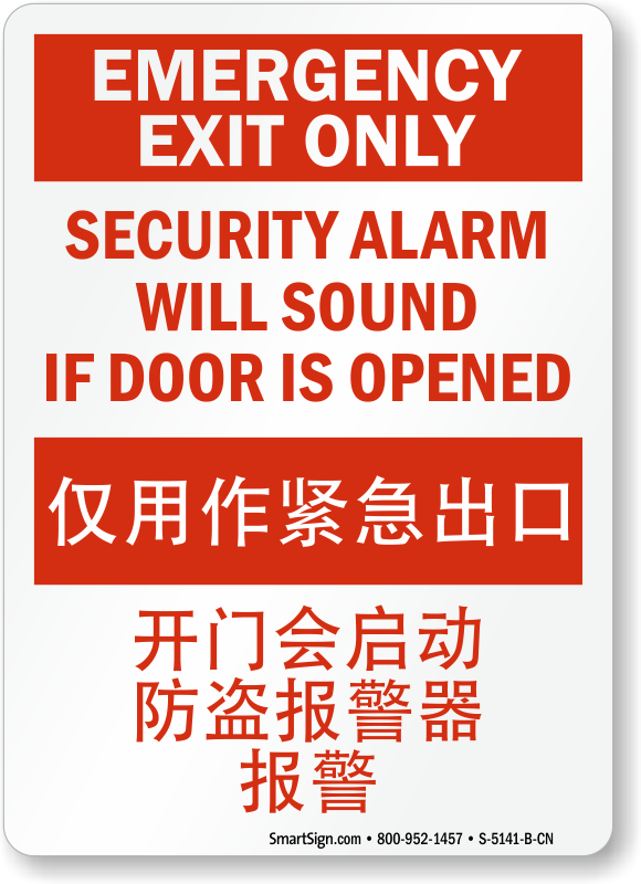 Avoid any chance that your safety message will be lost in translation. Post this Bilingual Fire and Emergency sign with its message in English and Chinese for everyone to be aware that the emergency exit door is closed during normal times.
