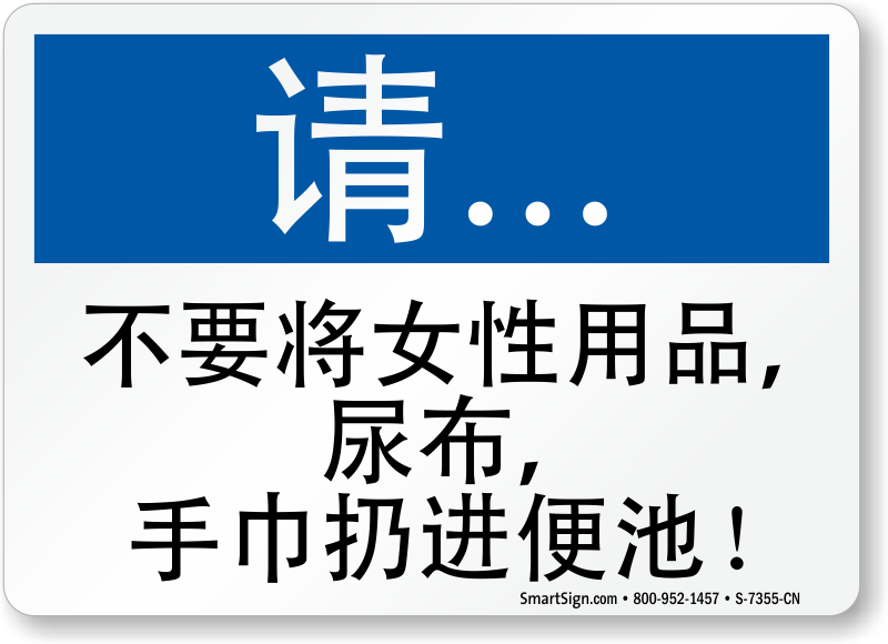 Remind female workers/visitors to maintain hygiene and not deposit anything that cannot be flushed in the toilet. Put this Feminine Hygiene Products sign that communicates exclusively with your Chinese audience.