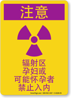 Mark the Radiation Area for female workers/visitors in your facility who speak Chinese. Display this Chinese OSHA Caution sign and instruct them against entering if they're pregnant.