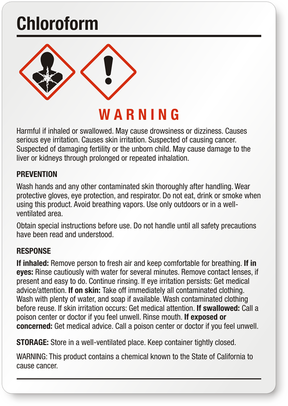 - View more GHS Chloroform labels here.