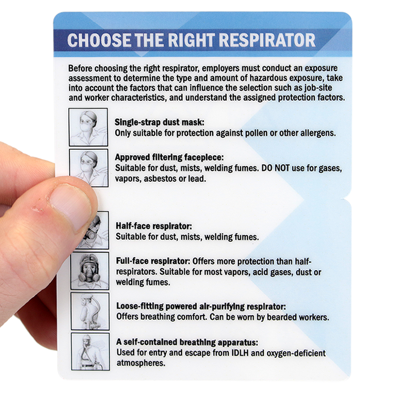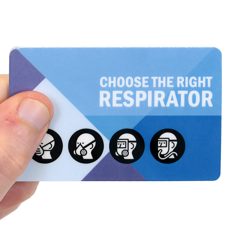 Do not let your employees get dependent on anyone to choose the right respirator. Issue them this handy wallet card that fits snuggly in their pocket.