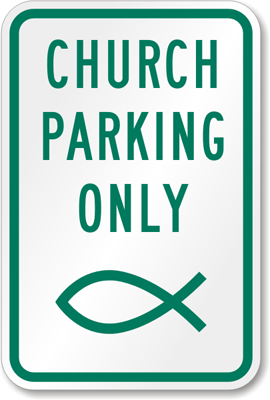 Church Parking signs make an impact on your parish. This graphic Church Parking Only sign is easily understood by all.