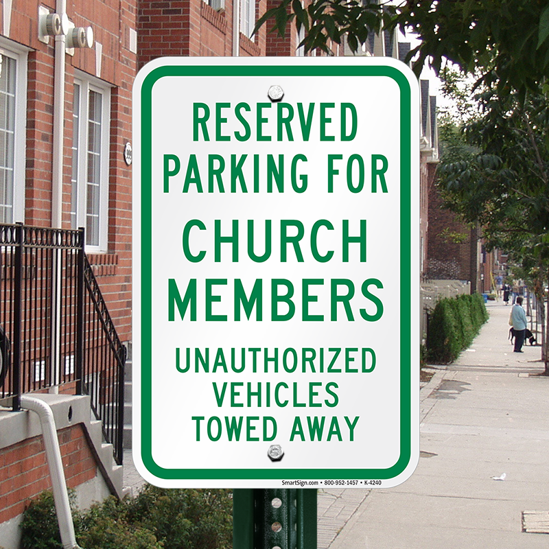 Church Parking Sign: Reserved Parking for Church Members, Unauthorized Vehicles Towed Away K-4240 Learn More...