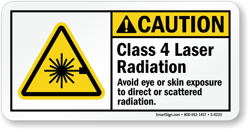 ANSI Caution Sign: Class 4 Laser Radiation, Avoid Eye Or Skin Exposure To Direct Or Scattered Radiation. S-9233