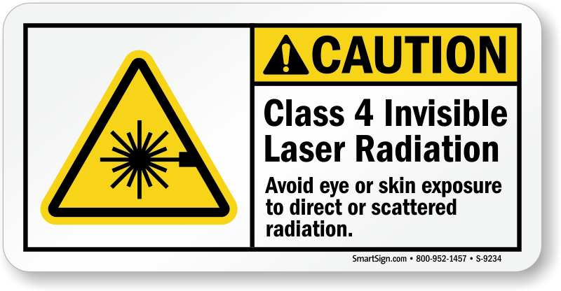 ANSI Caution Sign: Class 4 Invisible Laser Radiation, Avoid Eye Or Skin Exposure To Direct Or Scattered Radiation. S-9234