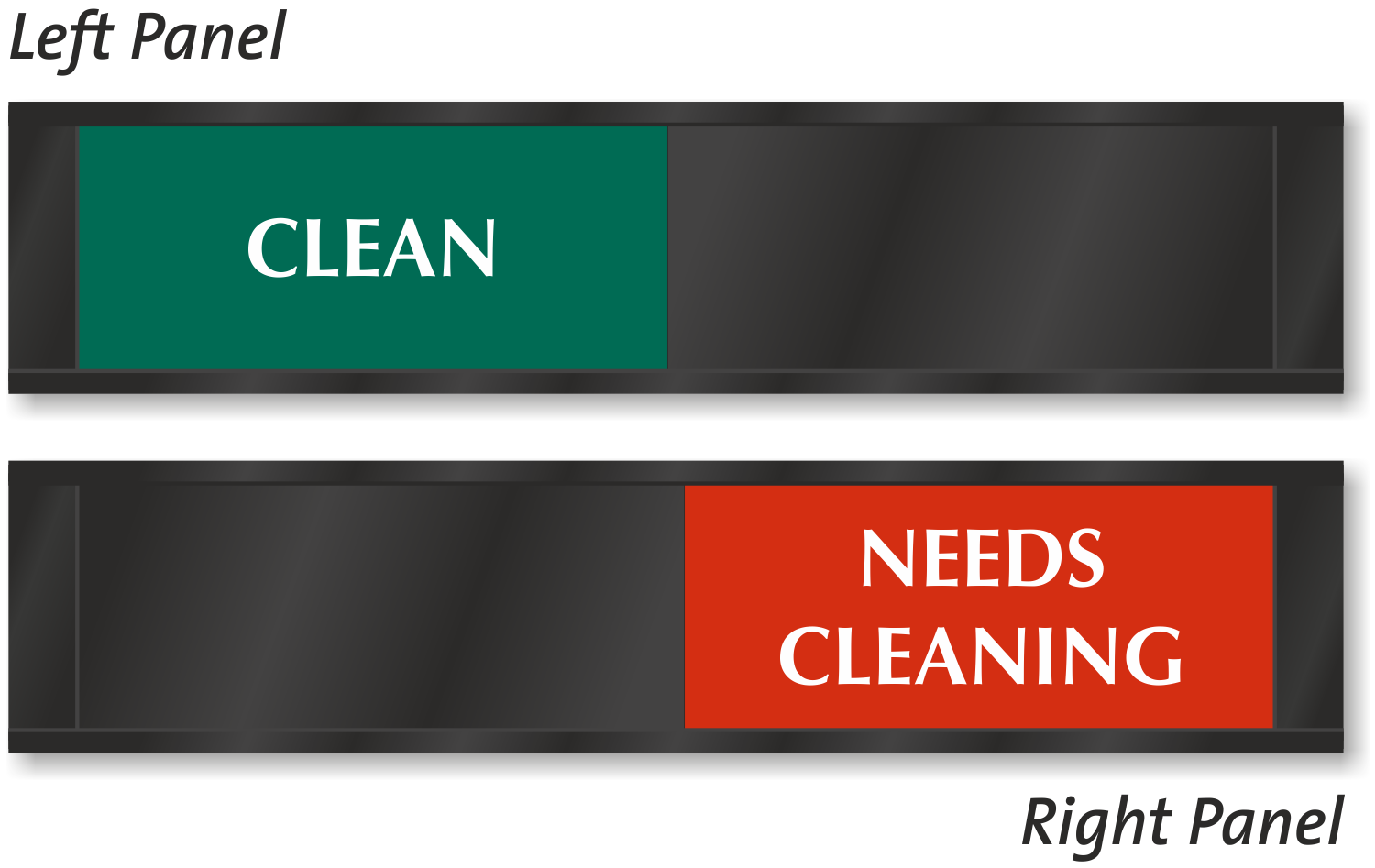 Sign has a sliding panel to reveal whether a space is clean or needs cleaning.