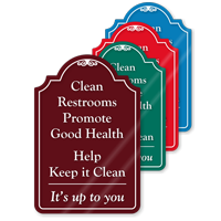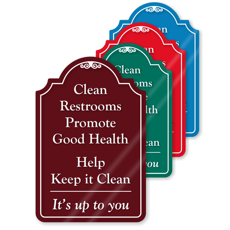 Draw attention to your clean restroom message with this designer sign. Promote cleanliness and good health with this sign.