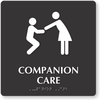 Identify companion care restrooms with a TactileTouchâ„¢ Braille Sign, so that the person with disability and the assistant know where to go for bathroom emergencies.
