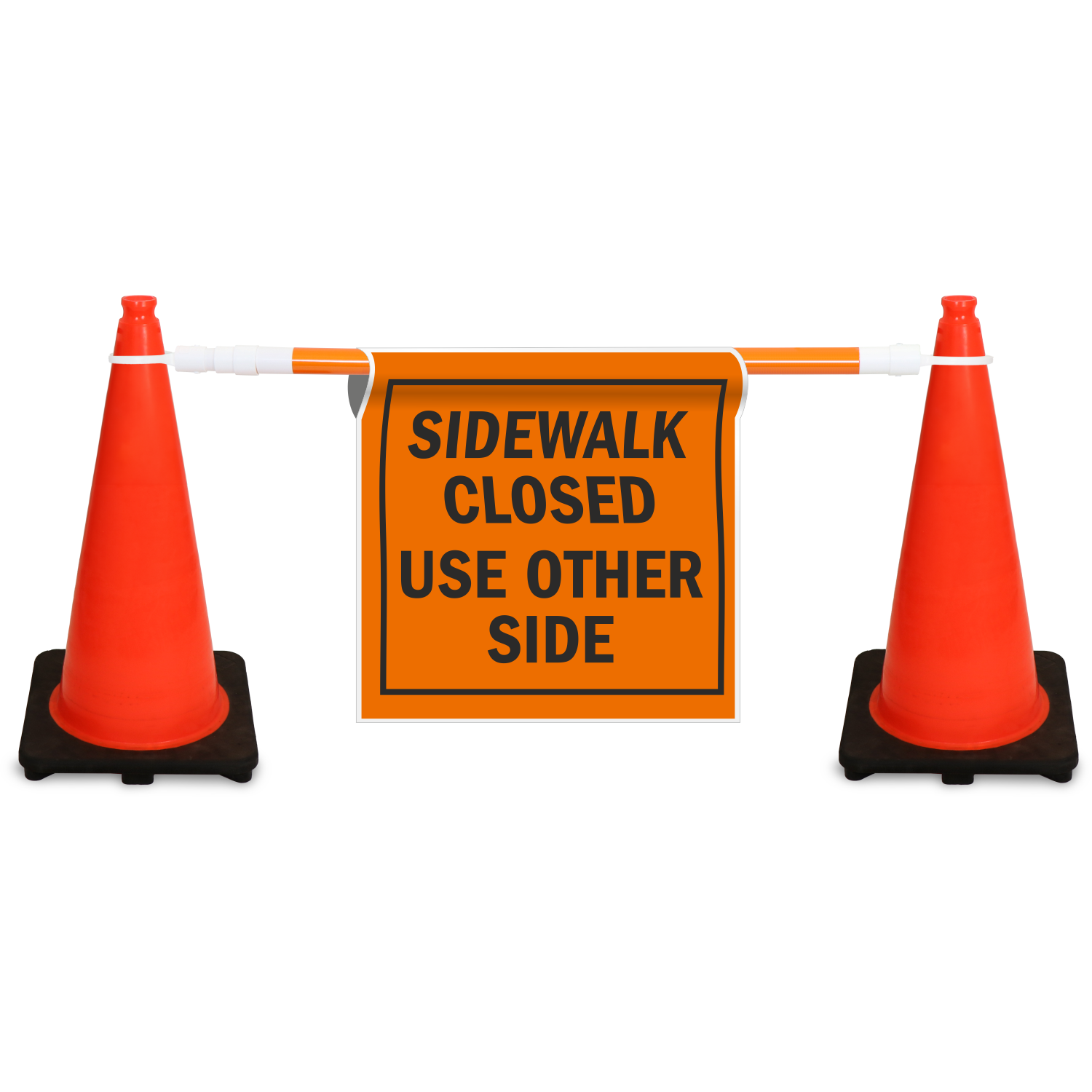 Cone Bar Barricade Signs: Sidewalk Closed Use Other Side Learn More...