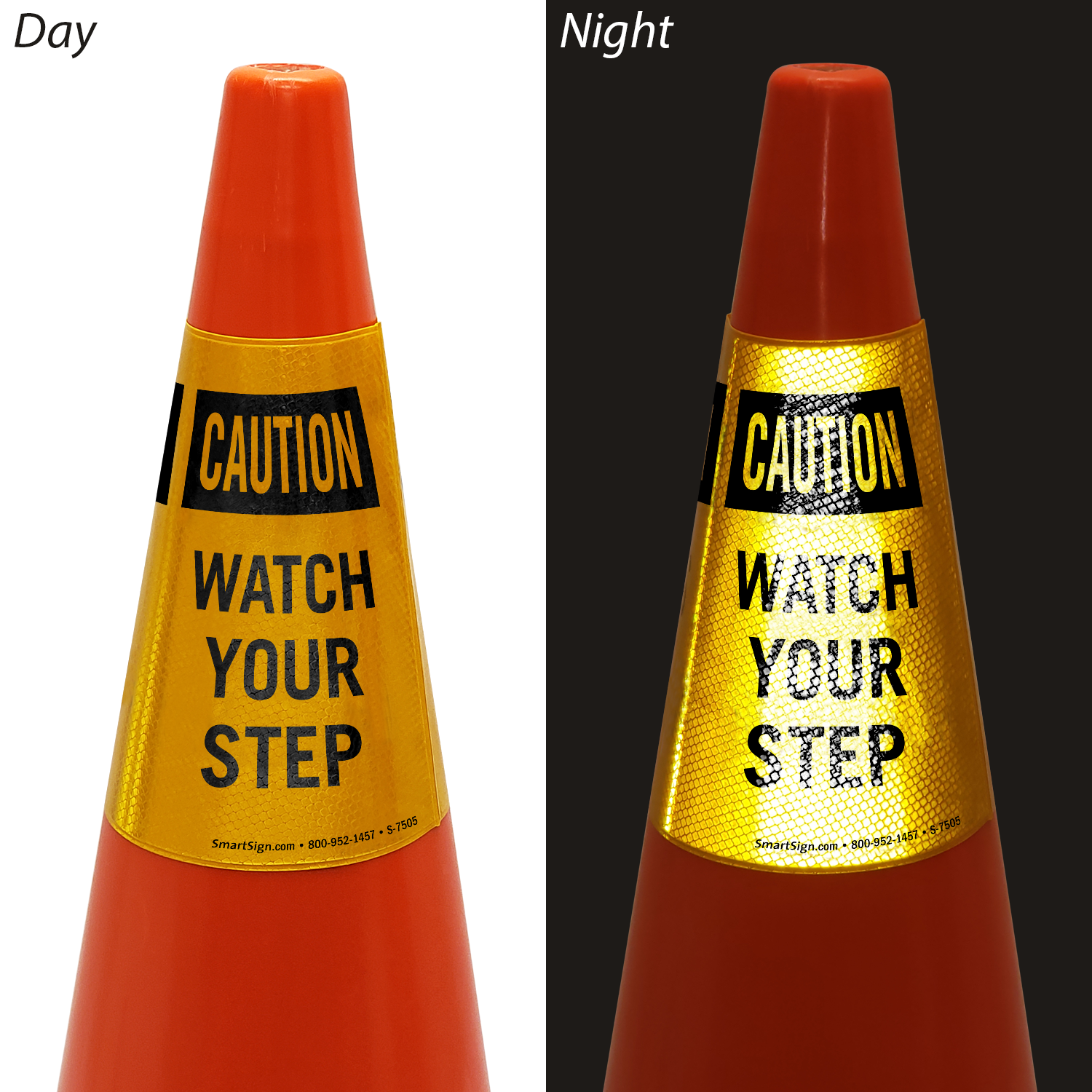 Cone Collars help keep people alert. Place a Caution Watch Your Step Collar on a traffic cone to help prevent trips.