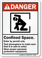 ANSI Danger Sign: Confined Space, Enter By Permit, Test Atmosphere, Wear Personal Protective Equipment S2-0821