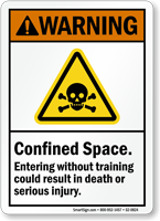 ANSI Warning Sign: Confined Space, Entering Without Training Could Result in Death Or Serious Injury