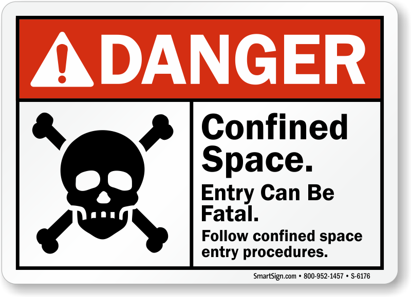 A bone and skull pictogram instantly commands attention. Use this ANSI Danger Sign to bring everyone's attention to confined space.
