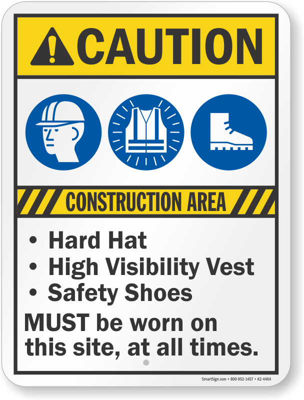 Convey your protective equipment requirement with a bold Caution Sign. ANSI-based design reinforces compliance.