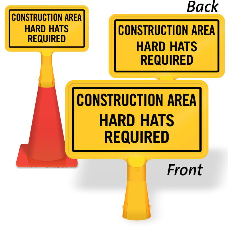 Use this highly-visible no-tip, portable Traffic Cone Sign to remind workers to wear hard hats in the construction area. Choose between 1-sided and 2-sided cone sign.
