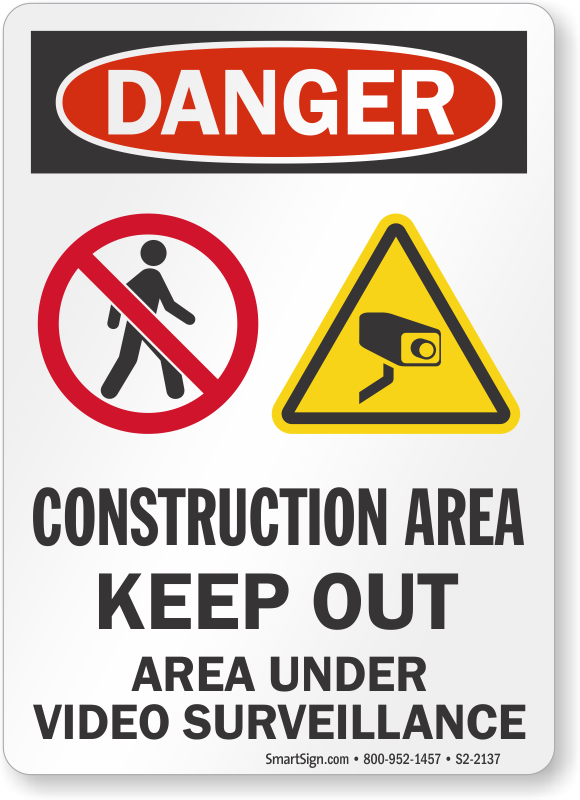 OSHA Danger Sign: Construction Area - Keep Out, Area Under Video Surveillance