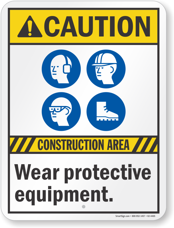 ANSI Caution Sign: Construction Area - Wear Protective Equipment Learn More...