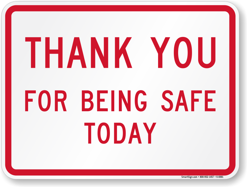 Safety Slogan Sign: Thank You For Being Safe Today K-6981
