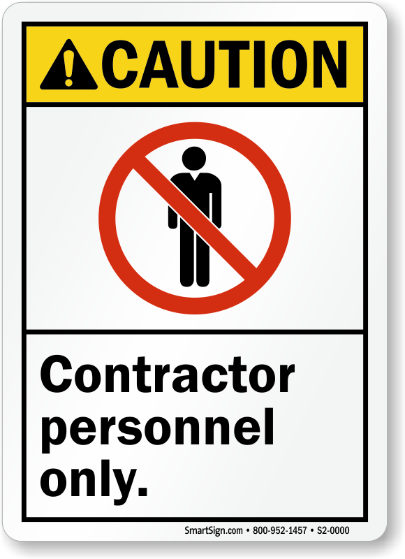 ANSI Caution Sign: Contractor Personnel Only. (With Graphic)