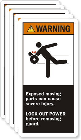 6in. x 3in. Laminated Vinyl Labels: Warning - Exposed Moving Parts Can Cause Severe Injury Lock Out Power L-0184-VS