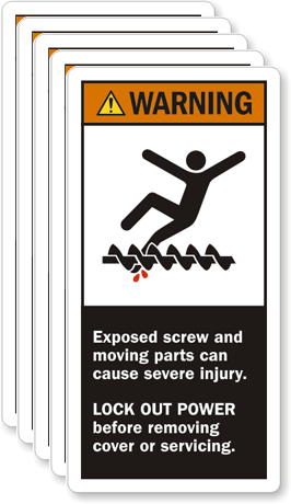 6in. x 3in. Laminated Vinyl Labels: Warning - Exposed Screw And Moving Parts Can Cause Severe Injury L-0185-VS