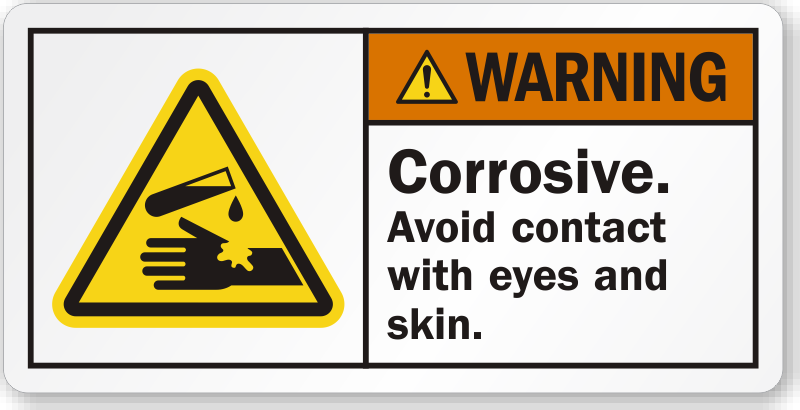 A graphic of skin burn on this ANSI label will tell employees to be cautious of corrosive materials and keep their eyes and skin from coming in contact with them.