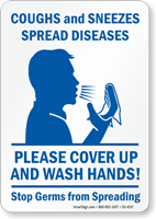 Promote healthy habits and hygiene in your facility. Ask unwell people to cover up while coughing and sneezing.