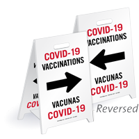 Reversible Fold-Ups® Floor Sign: COVID-19 Vaccinations Bilingual with Left Left and Right Arrow S2-4852