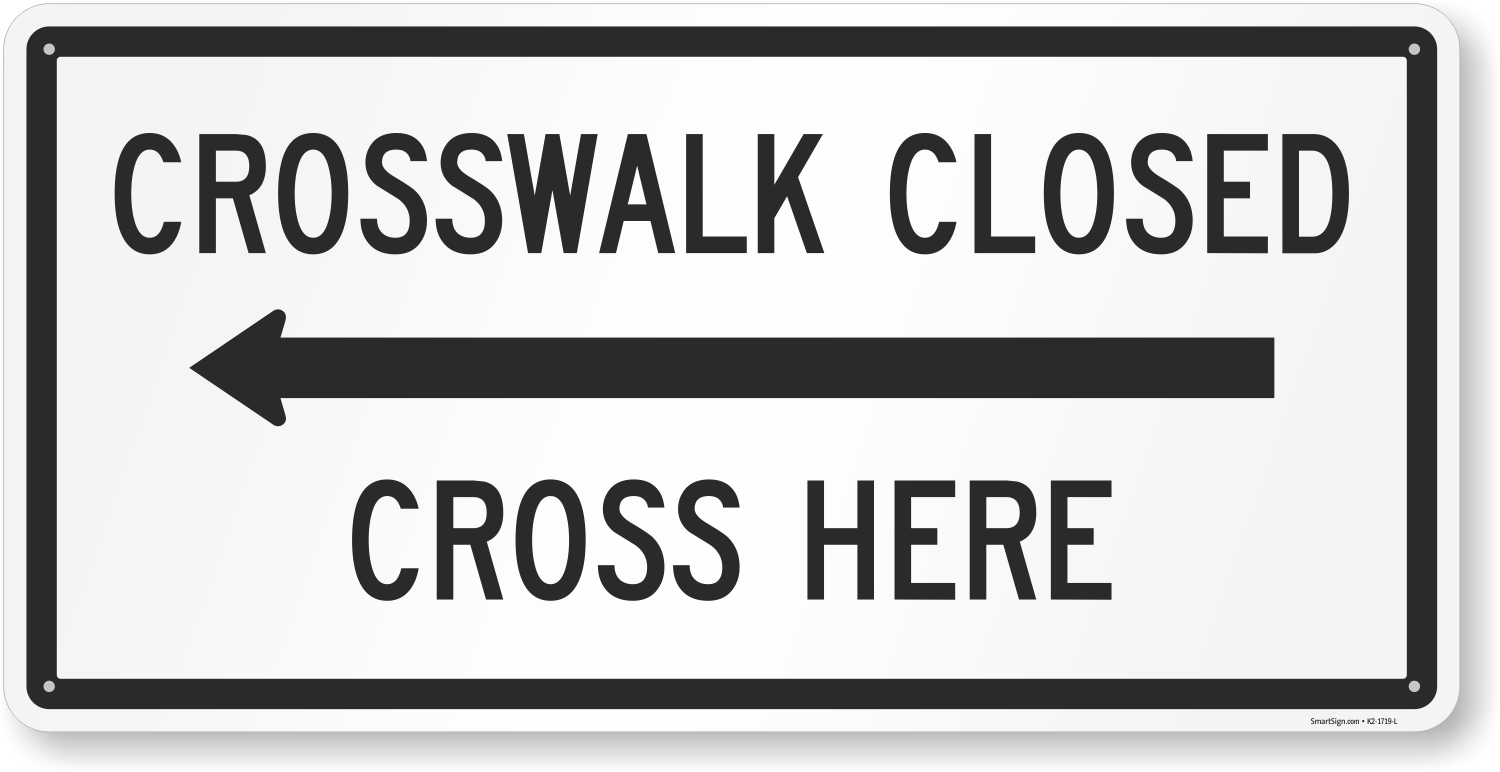 Pedestrian Sign: Crosswalk Closed Cross Here (Choose Arrow) K2-1719-L