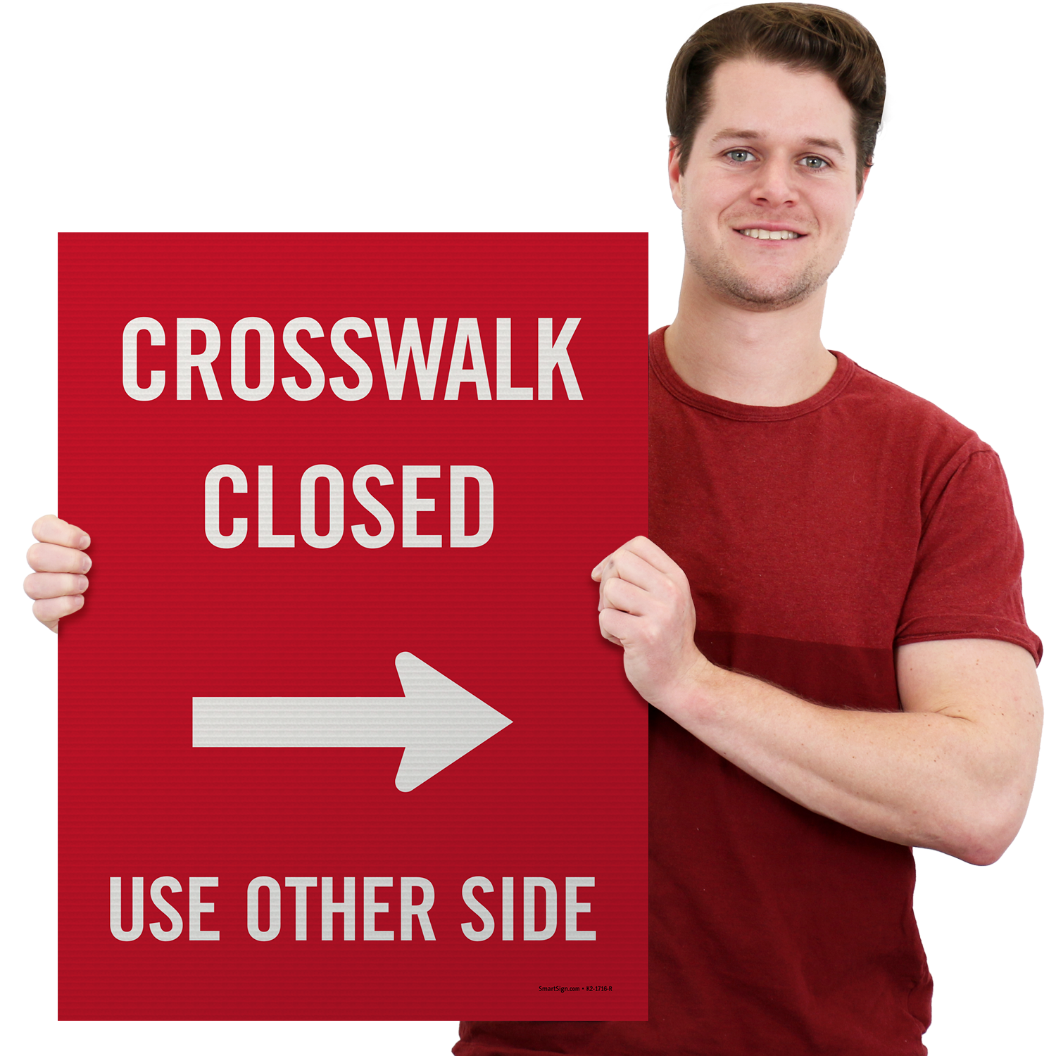 A-Frame Portable Sidewalk Sign: Crosswalk Closed Use Other Side with Left/Right Arrow K-ROLL-1225