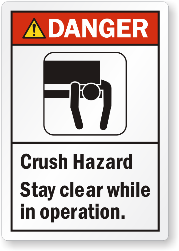 Risk of physical injuries can not be neglected when heavy machines are in operation. To prevent crush hazard, utilize this ANSI label and ensure that workers keep clear of dangerous areas.
