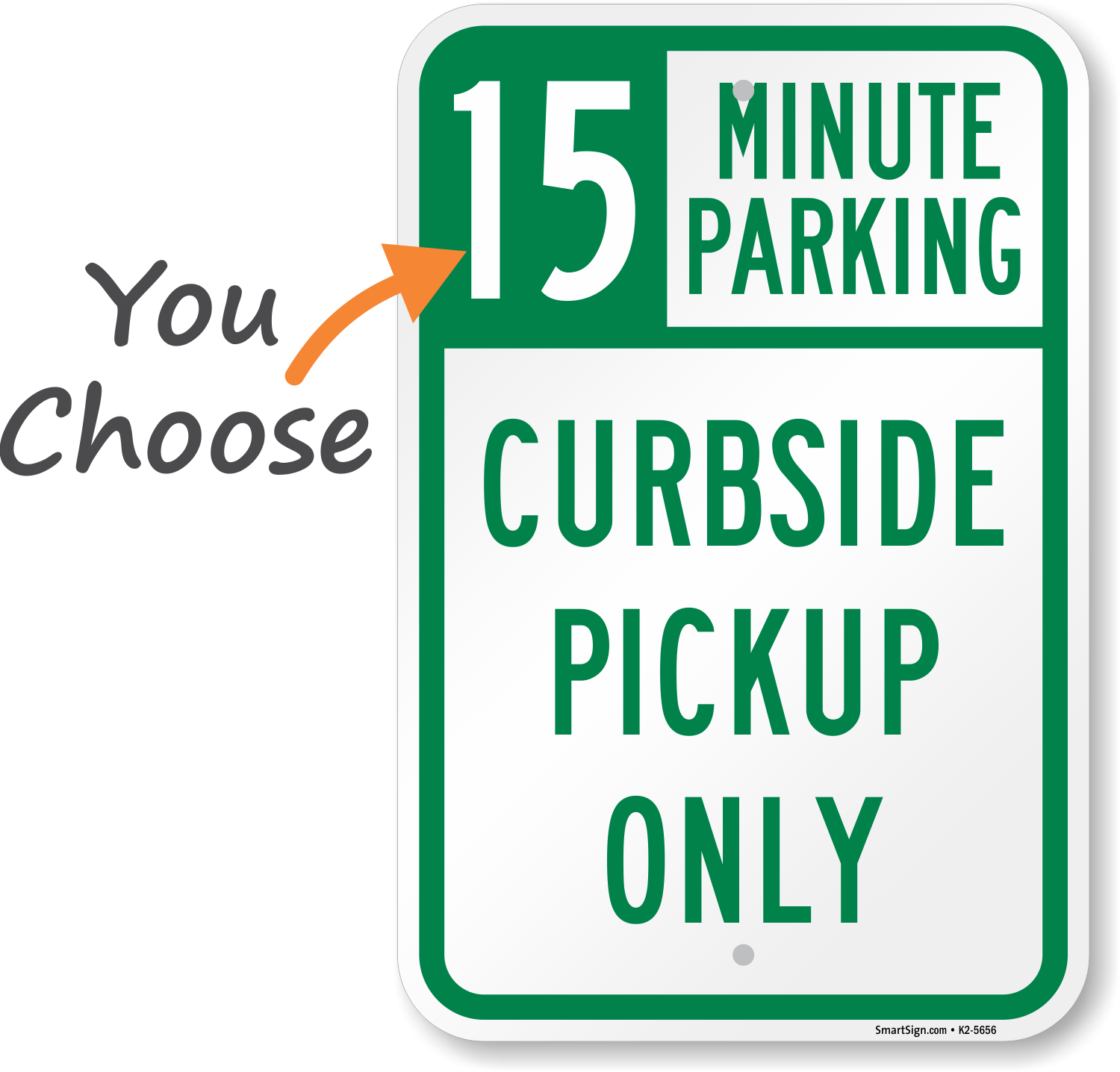 Curbside Pickup Sign: Curbside Pickup Only, Choose Your Parking Limit Minute K2-5656 Learn More...