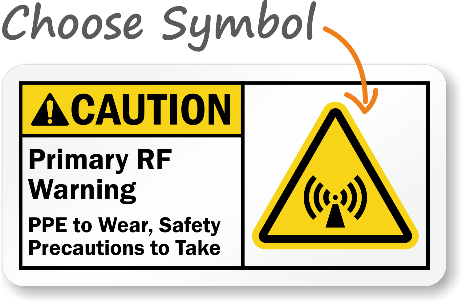 Use this custom ANSI Caution Sign near a radio frequency tower. Add your own text to remind workers of safety precautions and to wear personal protective equipment in a RF zone.