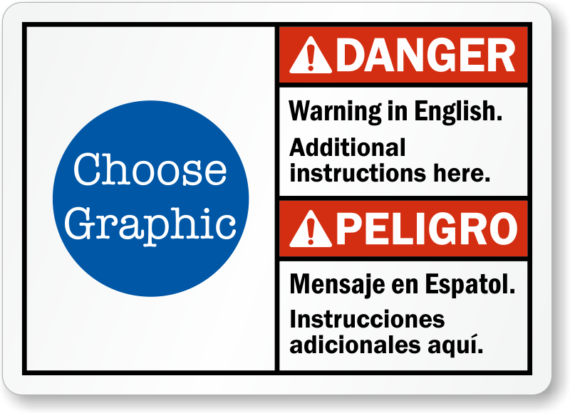 Give away any 'Danger' message to your employees, visitors, or patrons in English as well as Spanish. Additional instructions and a graphic can be added conveniently to this Custom Bilingual ANSI Danger/ Peligro Sign.
